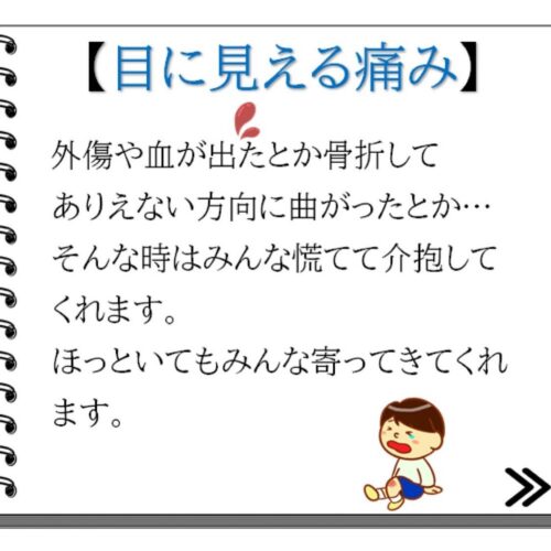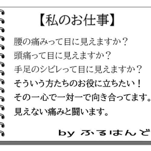 そんな思いが強くなり、見えない痛みを分かってやりたい!なんとかしてやりたい!と今の仕事に辿り着いたと思います。