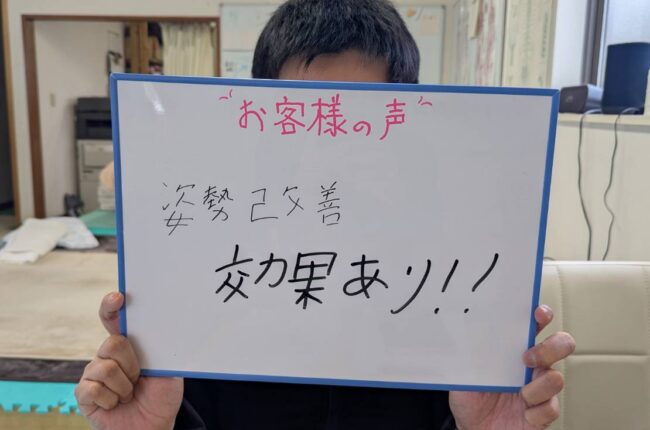 20代 男性デスクワーク・運転による身体の違和感でお越しくださいました。いち早く姿勢が改善されスッキリ感マシマシ!あとはたまに出てくる腰痛退治ですね!3週間メンテで待