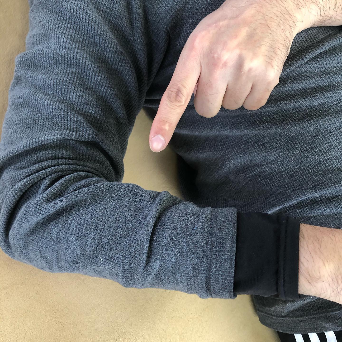 親指から上にのぼっていった肘の付け根付近が痛いんです。