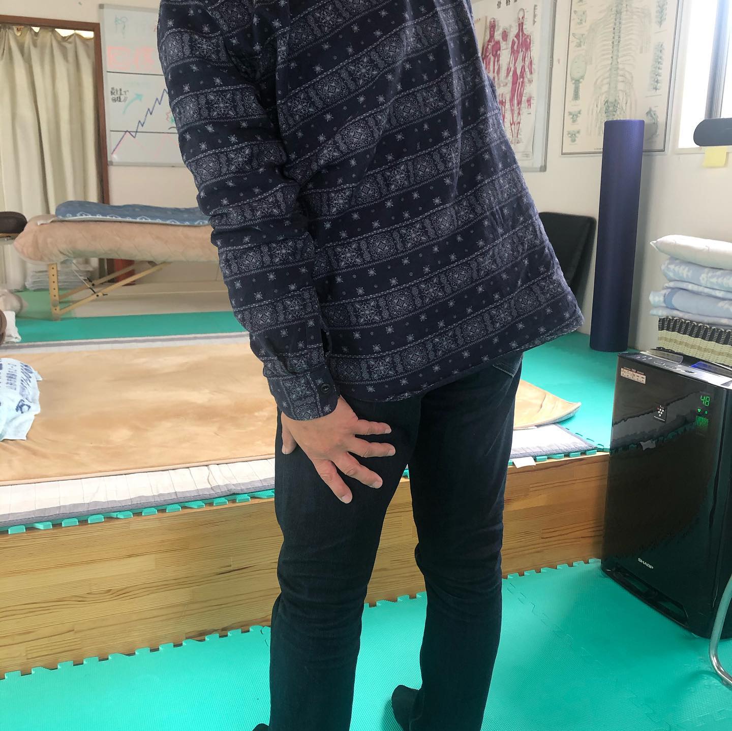 まずは辛くなったらすぐできるストレッチを覚えてもらい、お尻の激痛の緩和を目指します👍