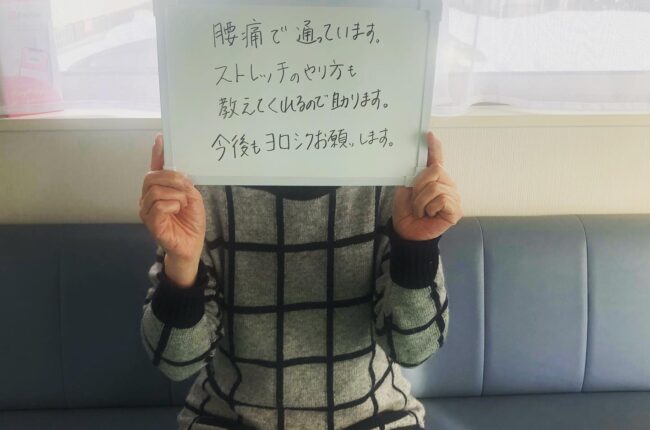 山形市在住のTさん仕事をしていた時から肩痛と腰痛があり、根本的に治していきたいと通院して頂いてます。第一主訴は肩痛で二番目に腰痛です。でも腰痛は持病なんで諦めてます。なんて言ってます